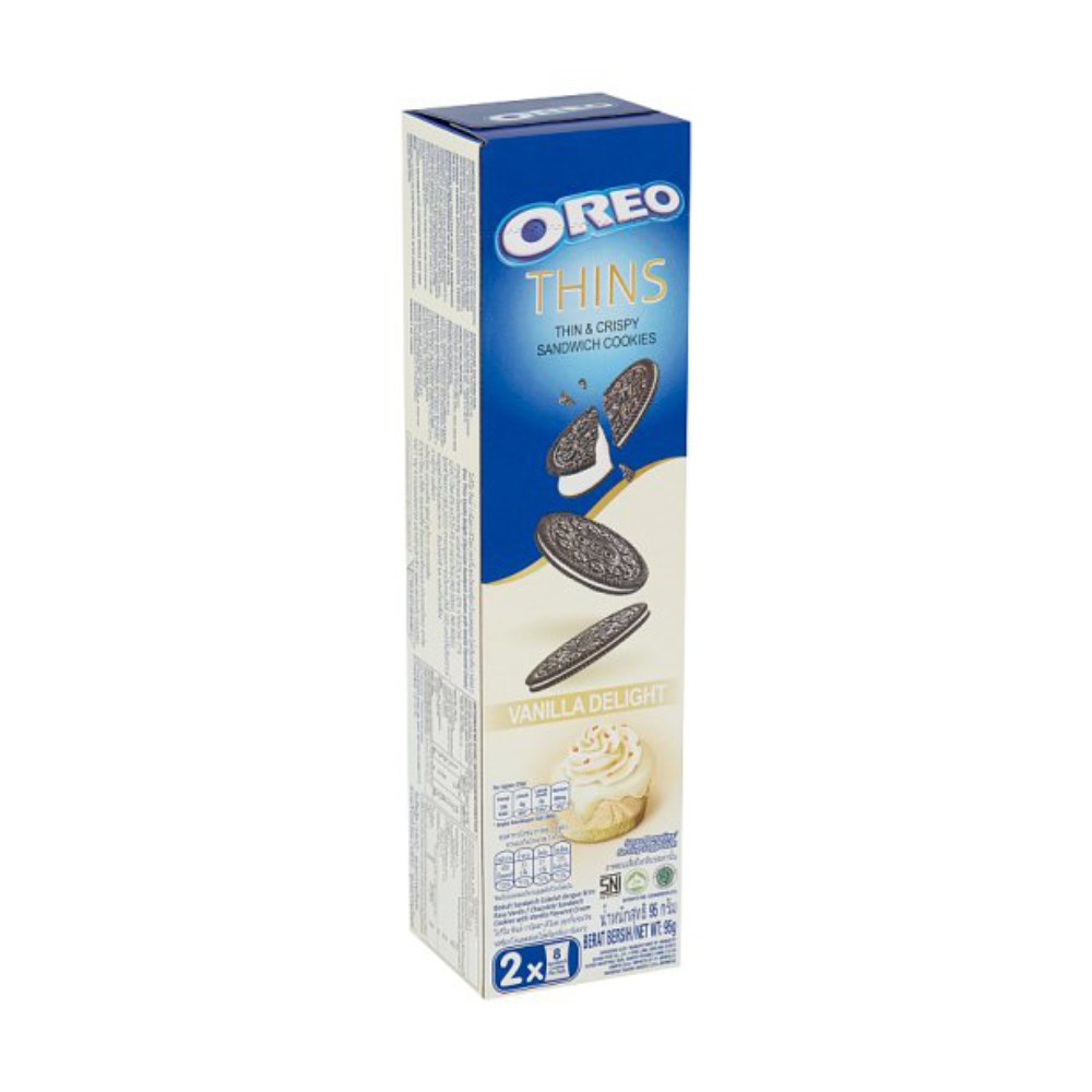 OREO Thins Vanilla Delight - 95g The same delicious Oreo Chocolate Sandwich Cookies, now thinner and crispier. Oreo Thins Vanilla Delight Flavor Cookies have an awesome vanilla chocolate center, perfect for your munching time! Size : NA Origin Country Malaysia RM 3.69 /1pack Market Selling : RM 4.50 Bulk Saving : RM 0.81 / 18.00% Quantity Share99 Products : 504