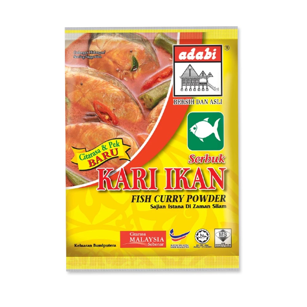 Adabi Serbuk Kari Ikan 250g Our heritage and expertise in spice coupled with the use of premium ingredients has paved the way for the perfect home-cooked curry. The Adabi Fish Curry Powder can be used to create truly delicious fish curry; enhancing the aroma and adding to the flavour of the dish. Size : 250g Origin Country Malaysia RM 4.49 /1 pack Market Selling : RM 4.90 Bulk Saving : RM 0.41 / 8.37% Quantity Share99 Products : 504