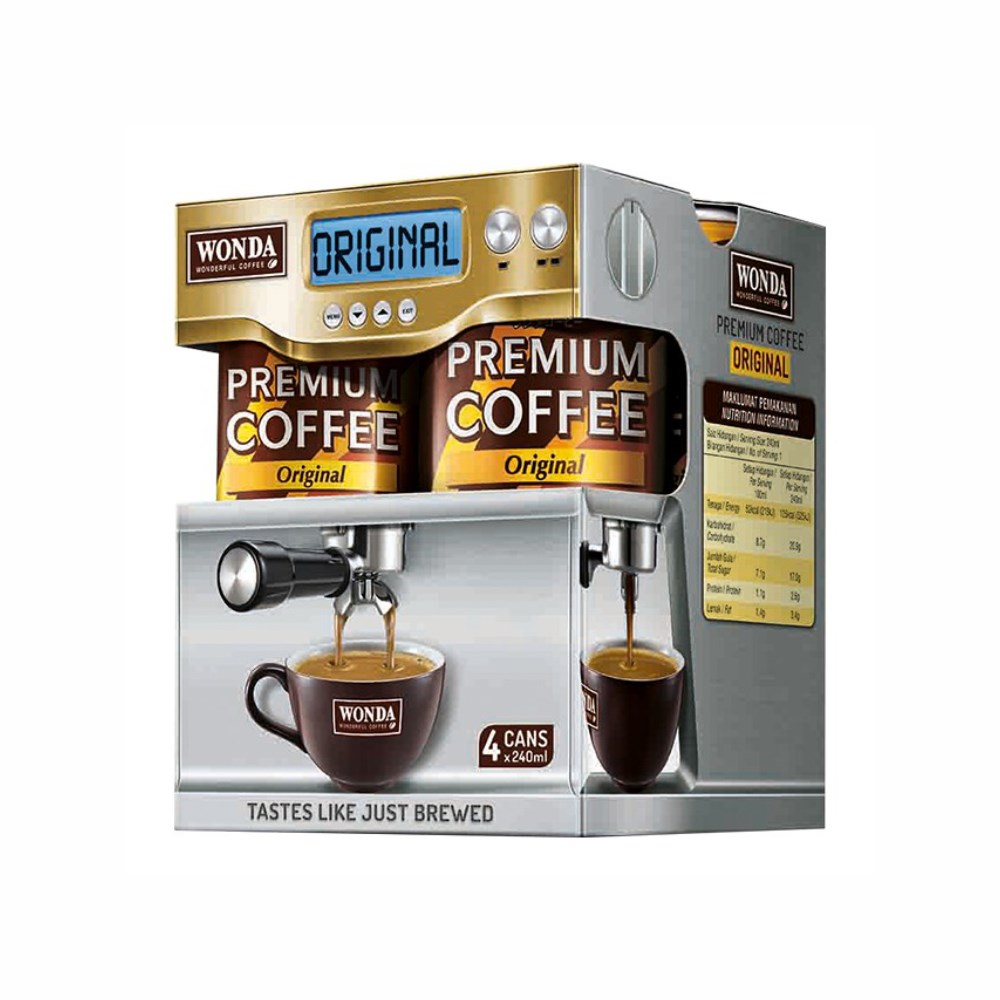 WONDA COFFEE Original Premium Coffee 4 Cans x 240ml WONDA Original contains more than 50% premium quality Arabica coffee beans. Have an Original at hand when you wake up in the morning or when you are driving. Size : NA Origin Country Malaysia RM 6.99 /1bundle Market Selling : RM 8.80 Bulk Saving : RM 1.81 / 20.57% Quantity Share99 Products : 504